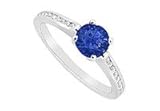 Sapphire and Diamond Engagement Ring : 14K White Gold - 0.75 CT TGW Size 9