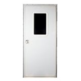 Entry Door, Square, 26X72, RH, Off WhiteReplace an ill-fitting, rusted or damaged towable RV door with a new radius corner or square corner door so your travel trailer or 5th wheel is weather-tight once again. All doors come with a screen door matching the color of the aluminum extrusion and a clear slide panel.Off White Square Corner Door, Right HandFiberglass skin, black flush lock with deadbolt, 12 x 21 window with obscure glass and black frame, a