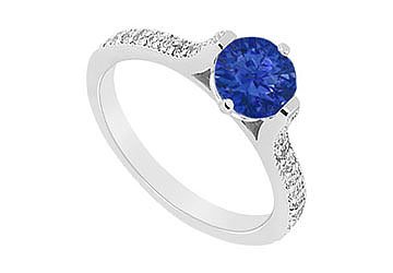 Sapphire and Diamond Engagement Ring : 14K White Gold - 0.75 CT TGW Size 5